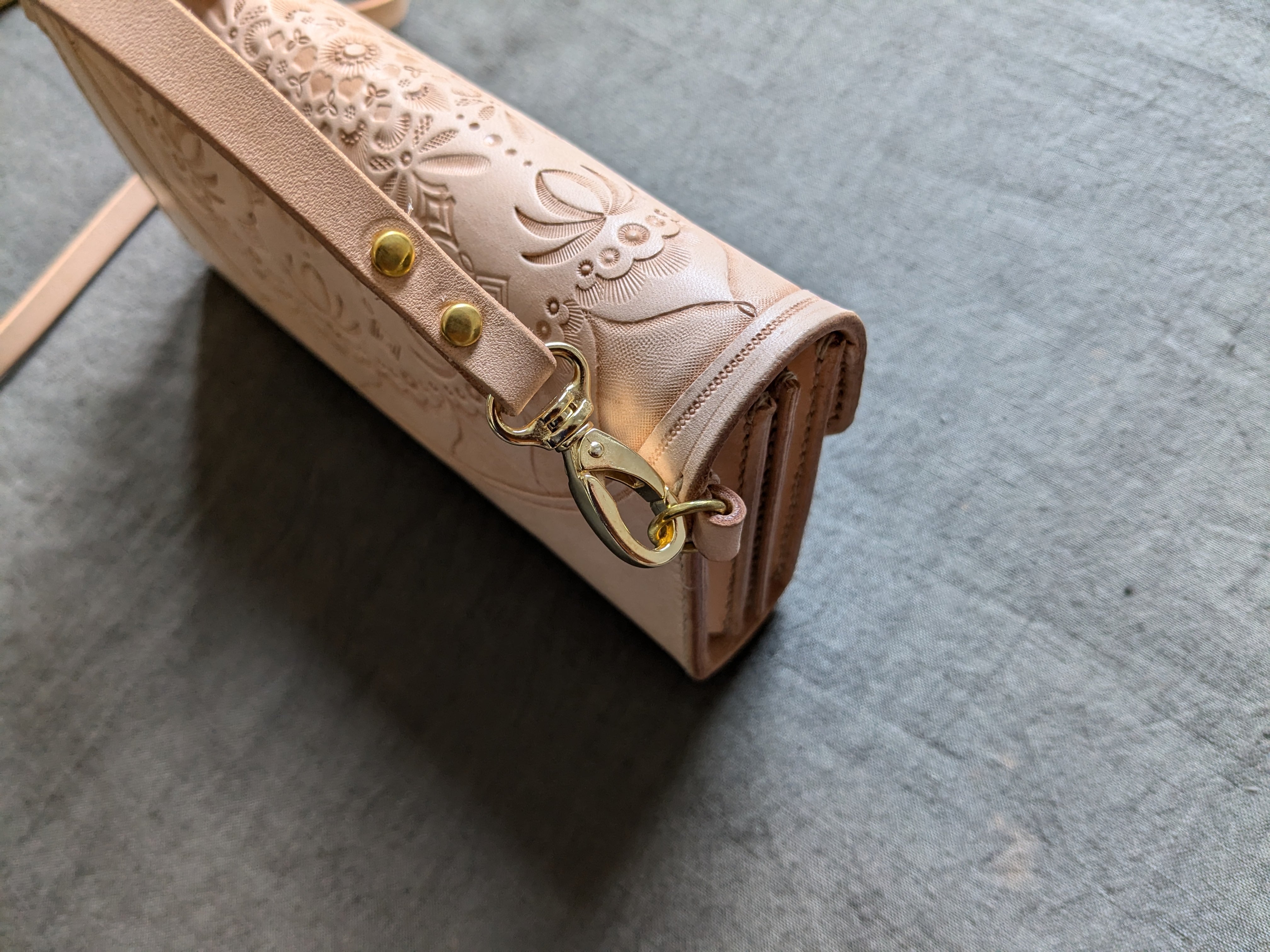 ラグジュアリー感と機能性を兼ね備えた【スマホも入るストラップ付き長財布】。