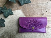 手染めの牛ヌメ革に繊細な模様を一つ一つ刻印しました。